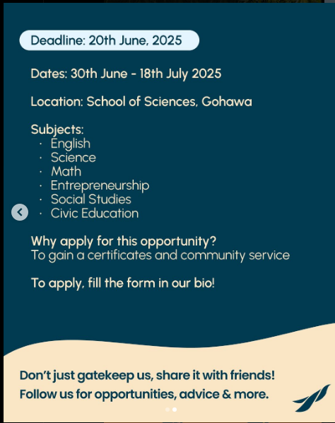 Next Generation Pakistan is conducting an internship program at School of Sciences, Gohawa aimed at empowering underprivileged students through education and life skills development. Interns will take part in teaching, mentoring, and coordinating creative activities. This opportunity allows participants to make a meaningful difference in the community while gaining valuable service experience. A community service completion certificate will be awarded to all participants